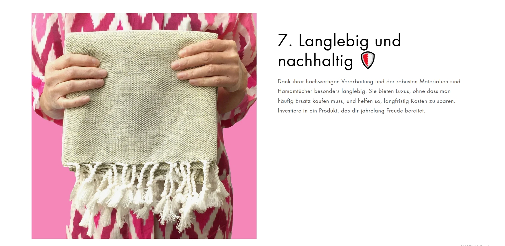 Ein Hamamtuch ist nicht nur ein Handtuch, es ist dein optimaler Begleiter — ob am Strand, beim Sport, im Spa oder zu Hause. Ursprünglich in den türkischen Badehäusern entstanden, haben diese leichten Tücher eine lange Tradition. Jedes Tuch wird auf traditionellen Webstühlen von Handwerkern in den Regionen Denizli und Antakya gewebt und verbindet Geschichte mit deinem aktiven Lebensstil. Ein Meisterwerk türkischer Handwerkskunst, das dich trocken hält, deinen Style auf ein neues Level hebt und für jede Lebenslage bestens geeignet ist.