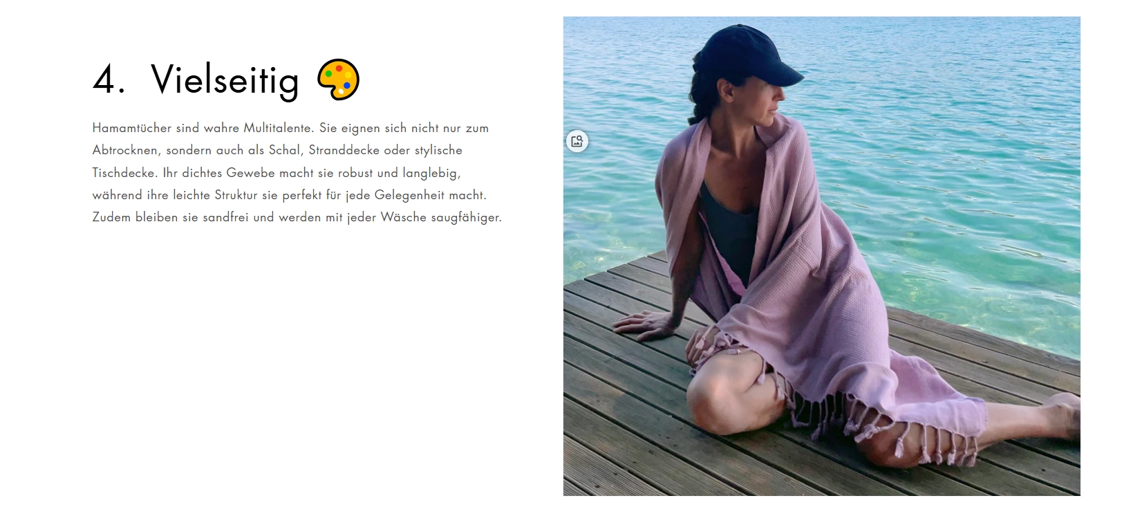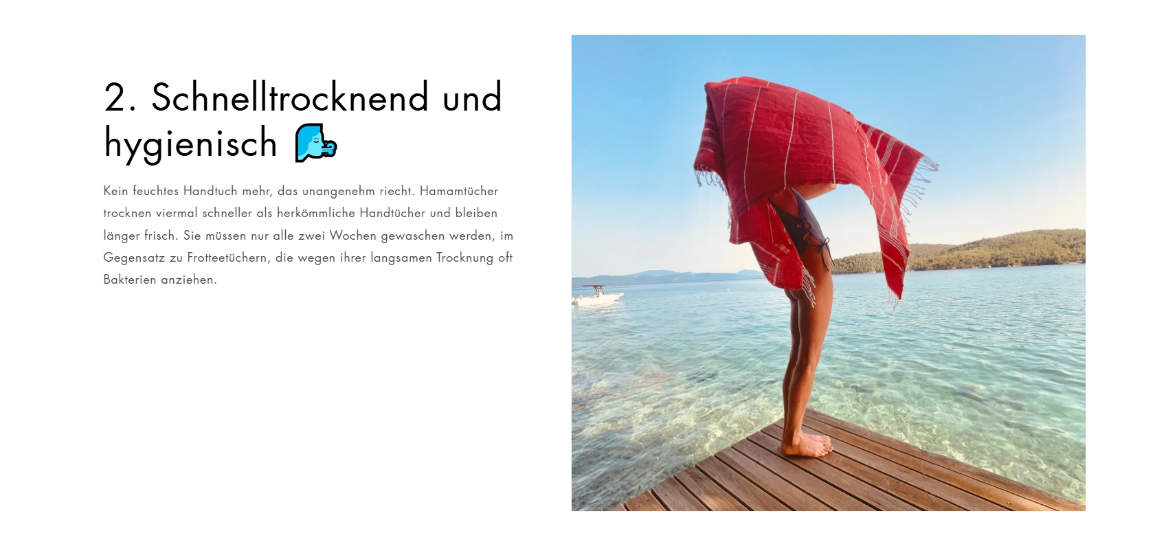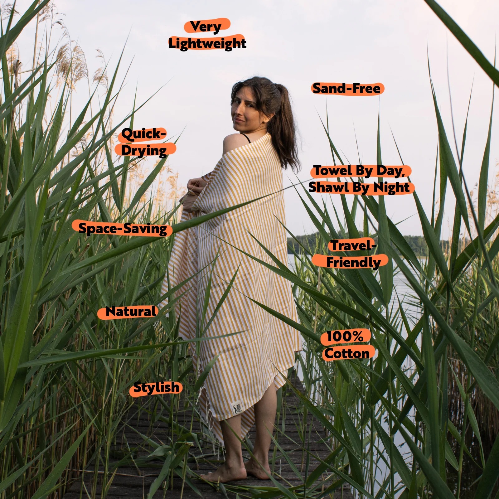 Hamamtücher sind leichter, trocknen schneller und sind unglaublich vielseitig. Ob du etwas suchst, das leicht zu packen ist, schnell trocknet oder einfach nur stilvoll ist—ein Hamamtuch erfüllt all diese Anforderungen und mehr.